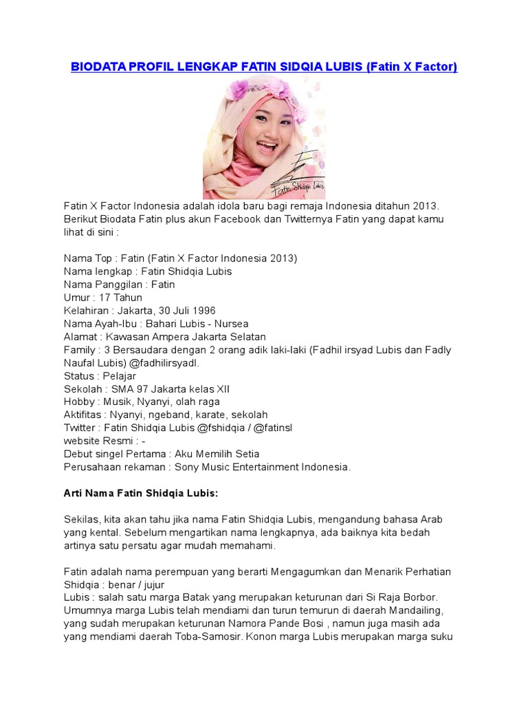 Biodata Fatin / Biodata Fatin Shidqia Lubis Lengkap Dengan Video dan Foto : Kini berusia 25 tahun (2019).. Discover short videos related to biodata fatin shidqia on tiktok. Biodata fathin shidqia lubis wow.peserta yang satu ini selalu menampilkan hal yang membuat juri berkata wow. Fatin shidqia lubis (born 30 july 1996), better known as fatin shidqia or fatin, is an indonesian singer and actress who won the first season of the indonesian version of the x factor in may 2013, becoming the first of two winners to be mentored by rossa.fatin currently stands as one of the most successful winners of the x factor indonesia.she was signed to record label sony music. Bagi anda yang ingin mengenal dia lebih dekat, baca biodata fatin sidqia lubis dibawah ini : Ya, wajar saja peserta ini memiliki fans yang banyak.